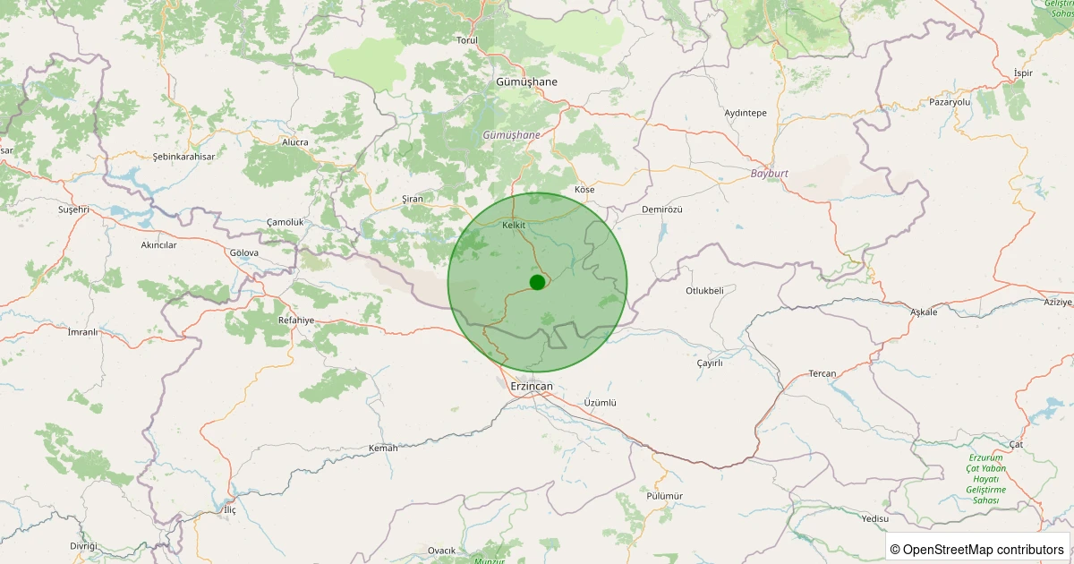 Son 7 gün içinde Kelkit - Balkaya Köyü noktasından 100 km yarıçap içerisinde meydana gelen diğer depremler: