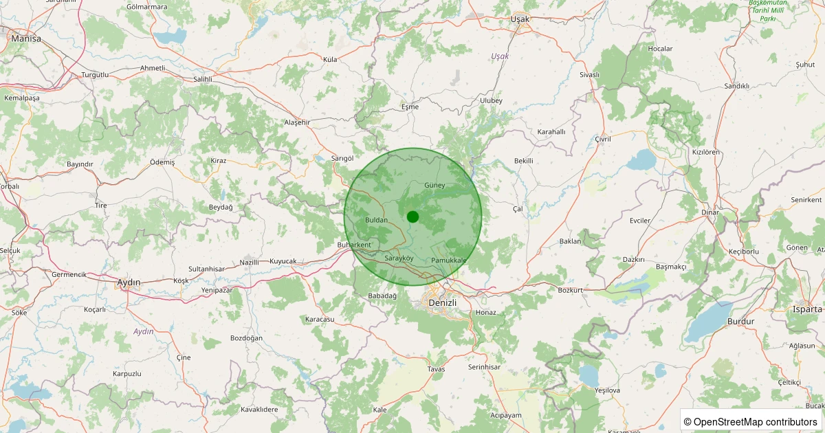 Son 7 gün içinde Buldan - Yenicekent noktasından 100 km yarıçap içerisinde meydana gelen diğer depremler: