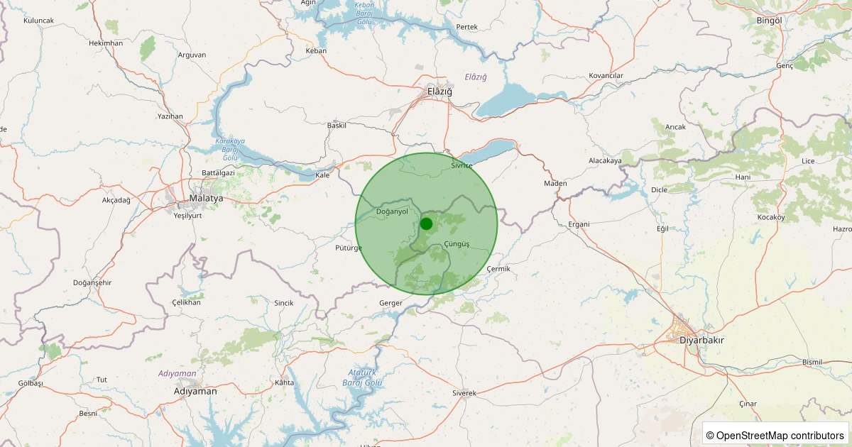 Son 7 gün içinde Çüngüş - Üçpınar Köyü noktasından 100 km yarıçap içerisinde meydana gelen diğer depremler: