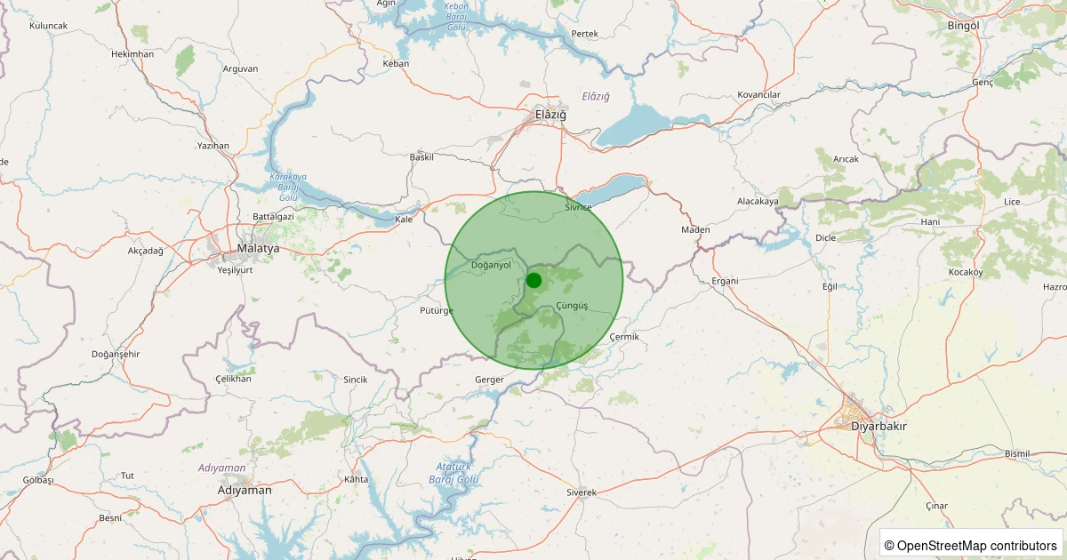 Son 7 gün içinde Çüngüş - Üçpınar Köyü noktasından 100 km yarıçap içerisinde meydana gelen diğer depremler: