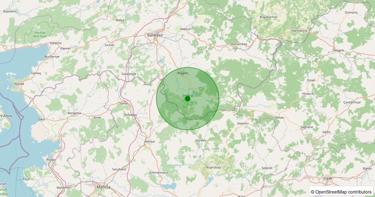 Son 7 gün içinde Sındırgı - Yaylacık noktasından 100 km yarıçap içerisinde meydana gelen diğer depremler: