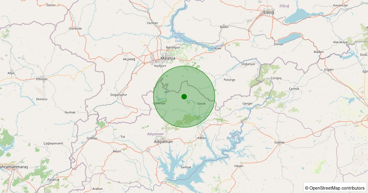 Son bir hafta içerisinde Adıyaman şehri Sincik - Hüseyinli Köyü noktasından 100 km yarıçap içerisinde toplamda 294 deprem kaydedilmiştir. Bu depremlerden en büyüğü 4.3 büyüklüğünde ve en sığ odaklısı 0.00 kilometre derinlikte gerçekleşmiştir.