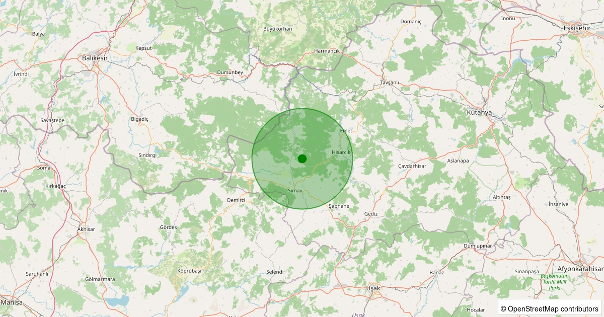 Son 7 gün içinde Simav - Yemişli Köyü noktasından 100 km yarıçap içerisinde meydana gelen diğer depremler: