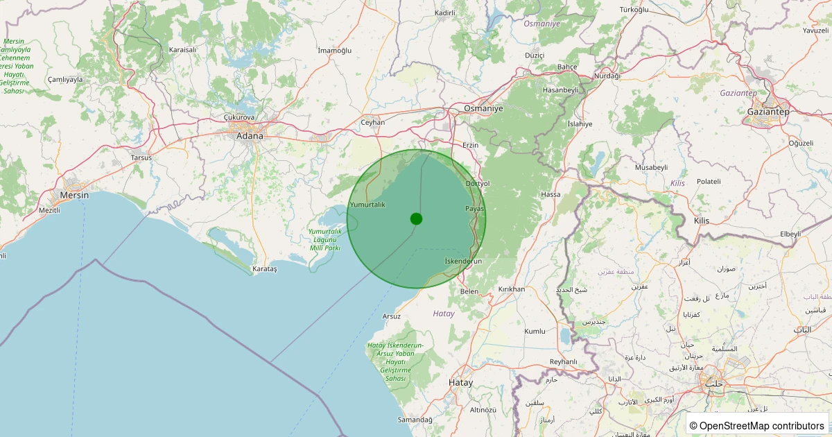 Son bir hafta içerisinde Akdeniz - İskenderun Körfezi - [16.94 km] Yumurtalık (Adana) noktasından 100 km yarıçap içerisinde toplamda 20 deprem kaydedilmiştir. Bu depremlerden en büyüğü 2.7 büyüklüğünde ve en sığ odaklısı 5.00 kilometre derinlikte gerçekleşmiştir.