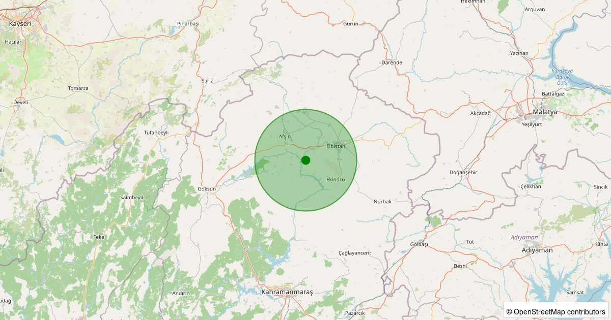 Son 7 gün içinde Elbistan - Akören Köyü noktasından 100 km yarıçap içerisinde meydana gelen diğer depremler: