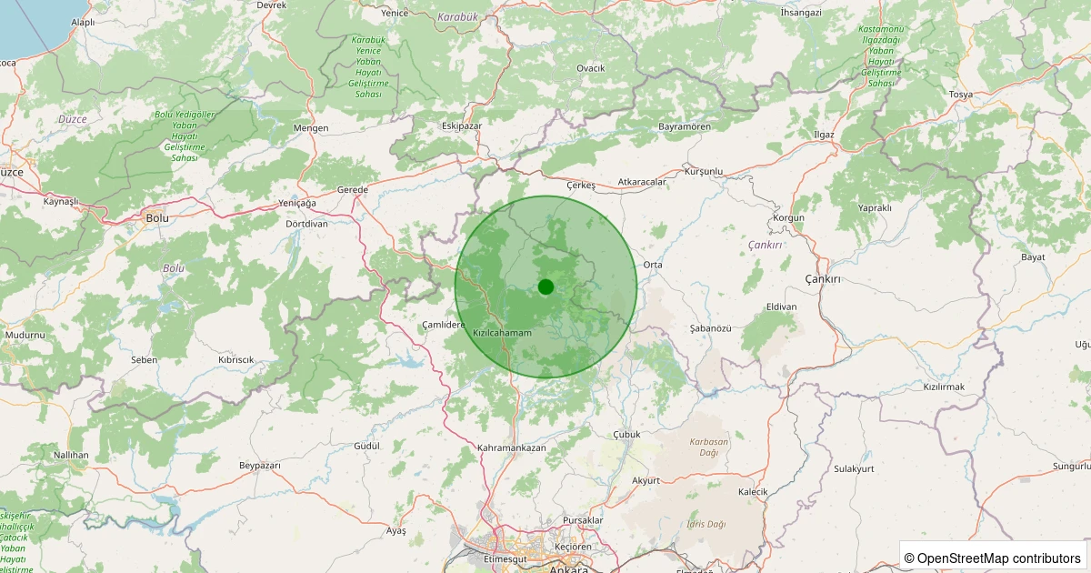 Son 7 gün içinde Kızılcahamam - Eğerlibaşköy noktasından 100 km yarıçap içerisinde meydana gelen diğer depremler: