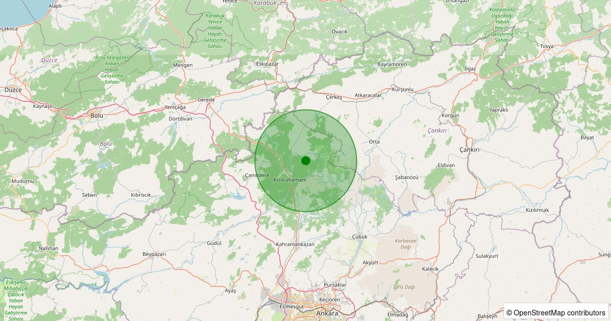 Son 7 gün içinde Kızılcahamam - Eğerlidereköy noktasından 100 km yarıçap içerisinde meydana gelen diğer depremler: