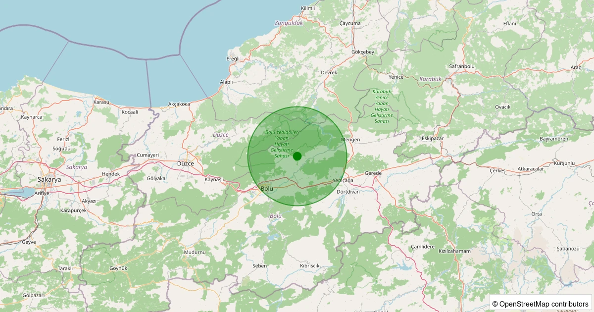 Son bir hafta içerisinde Bolu şehri Merkez noktasından 100 km yarıçap içerisinde toplamda 48 deprem kaydedilmiştir. Bu depremlerden en büyüğü 2.7 büyüklüğünde ve en sığ odaklısı 1.00 kilometre derinlikte gerçekleşmiştir.