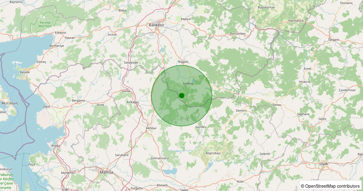 Son 7 gün içinde Sındırgı - Sinandede noktasından 100 km yarıçap içerisinde meydana gelen diğer depremler: