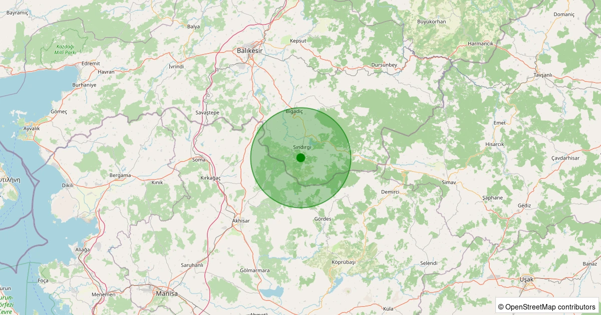 Son 7 gün içinde Sındırgı - Yaylacık noktasından 100 km yarıçap içerisinde meydana gelen diğer depremler: