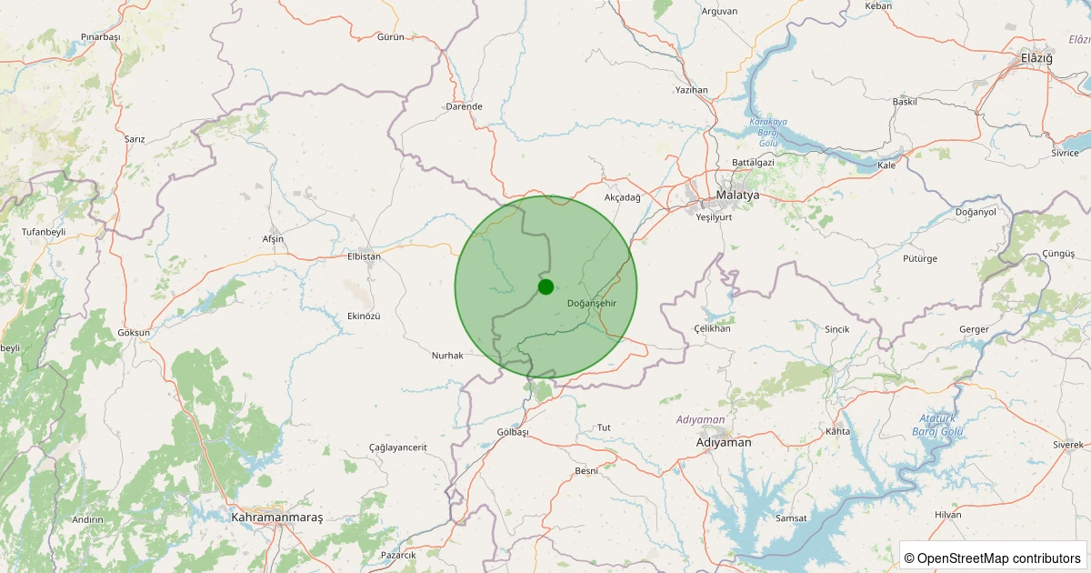 Son 7 gün içinde Doğanşehir - Fındık noktasından 100 km yarıçap içerisinde meydana gelen diğer depremler: