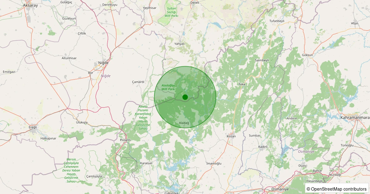 Son 7 gün içinde Yahyalı - Büyük Çakır noktasından 100 km yarıçap içerisinde meydana gelen diğer depremler: