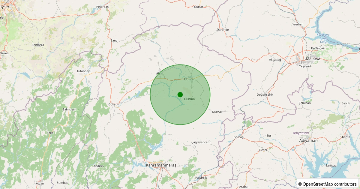 Son 7 gün içinde Ekinözü - Ortaören noktasından 100 km yarıçap içerisinde meydana gelen diğer depremler:
