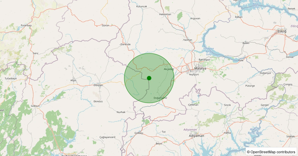 Son 7 gün içinde Akçadağ - Çevirme noktasından 100 km yarıçap içerisinde meydana gelen diğer depremler: