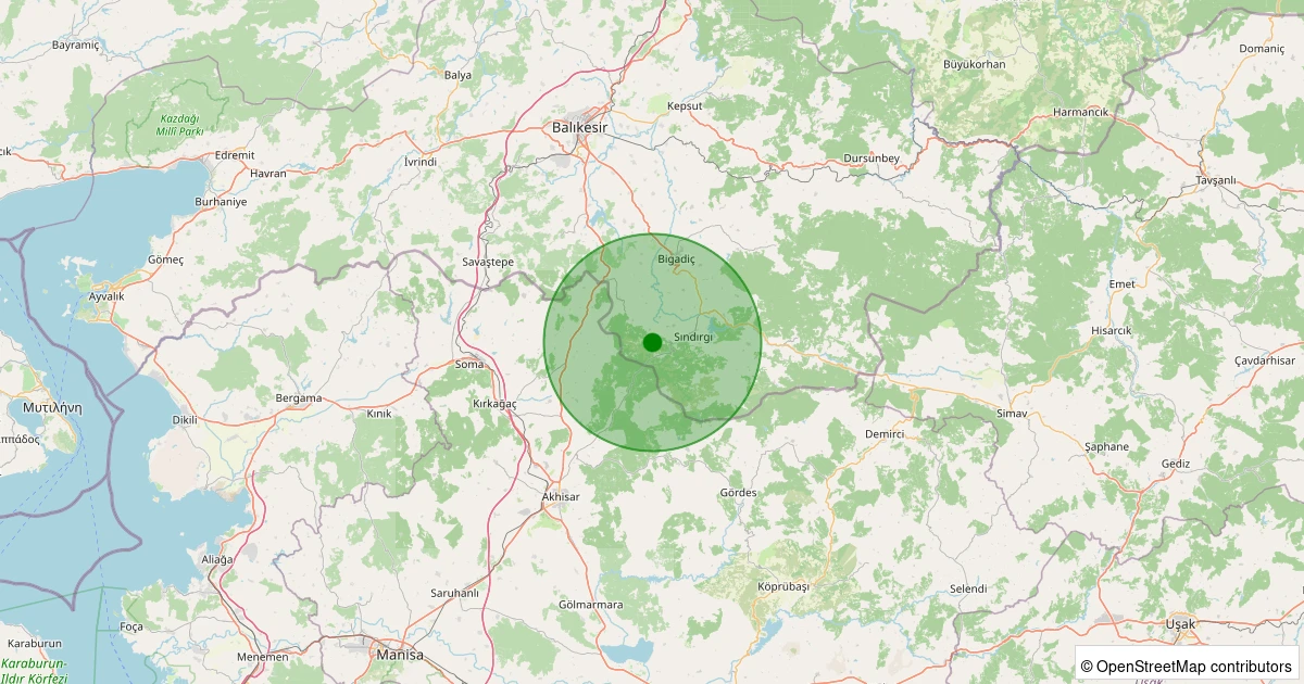 Son 7 gün içinde Sındırgı - Kozlu noktasından 100 km yarıçap içerisinde meydana gelen diğer depremler: