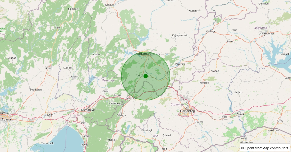 Son 7 gün içinde Türkoğlu noktasından 100 km yarıçap içerisinde meydana gelen diğer depremler: