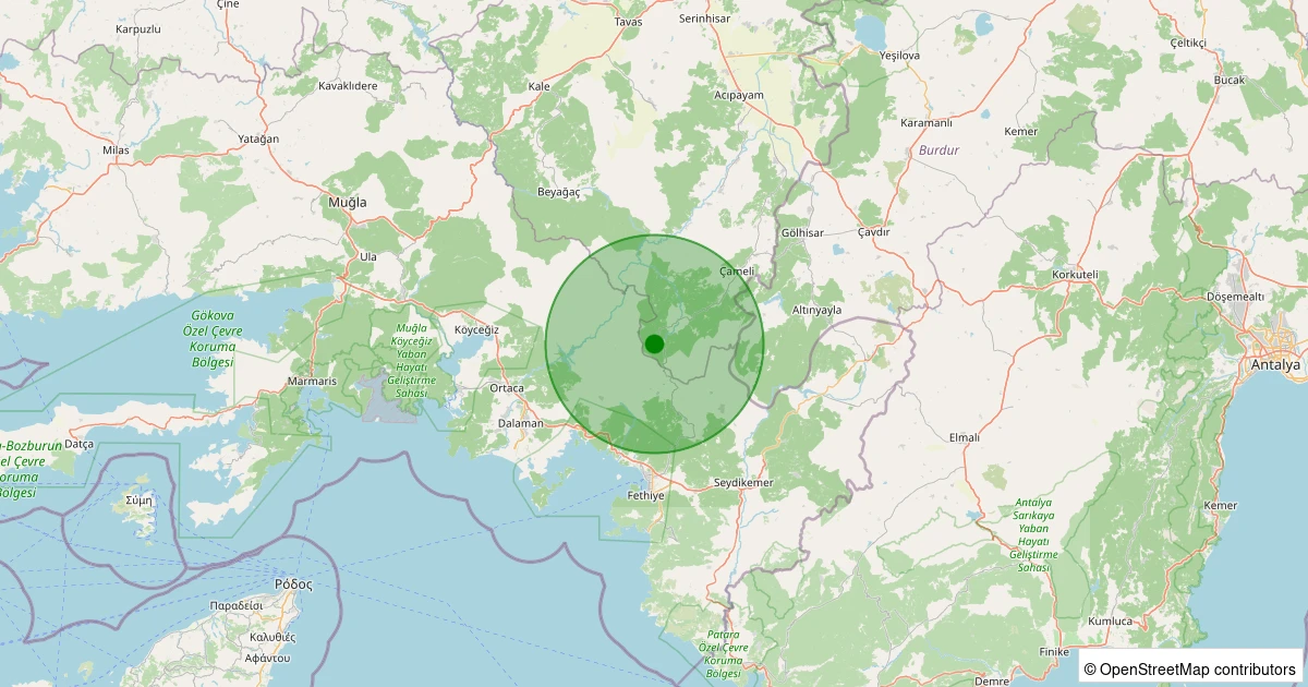 Son 7 gün içinde Çameli - Karabayır noktasından 100 km yarıçap içerisinde meydana gelen diğer depremler: