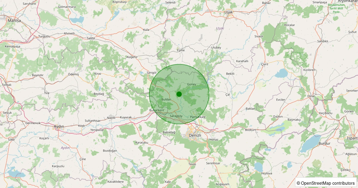 Son 7 gün içinde Buldan - Yenicekent noktasından 100 km yarıçap içerisinde meydana gelen diğer depremler: