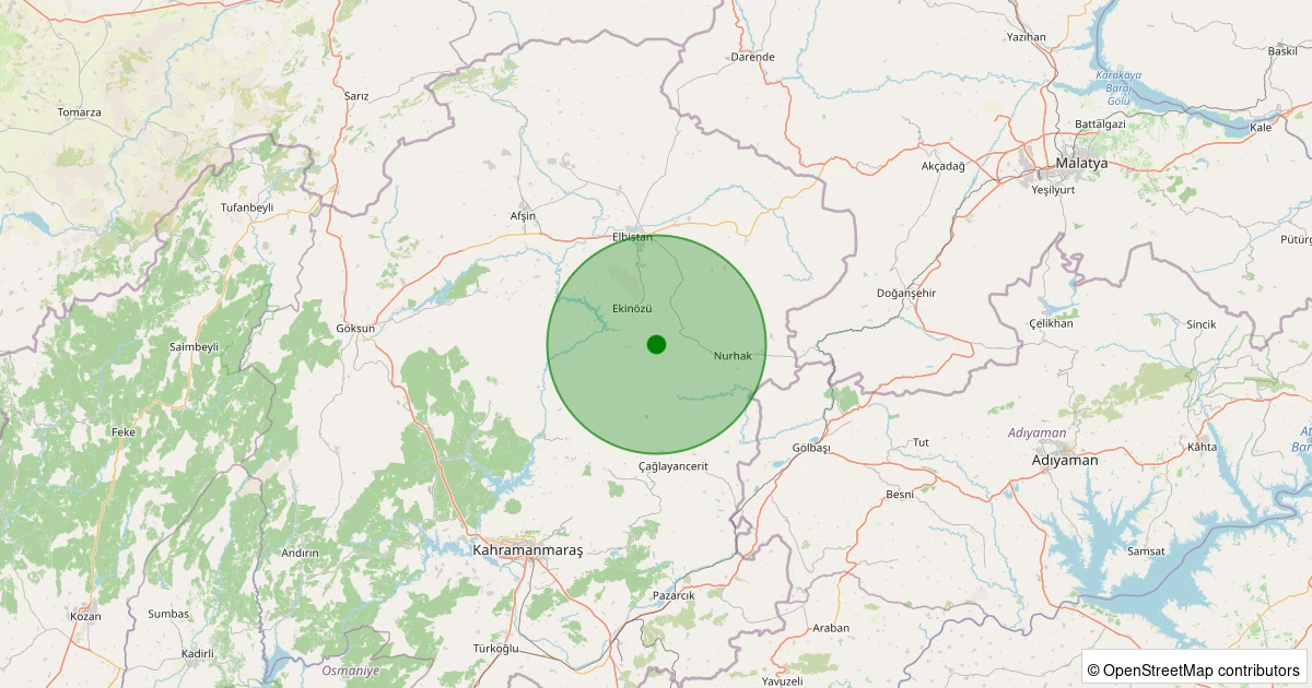Son 7 gün içinde Ekinözü - A.Yaprak noktasından 100 km yarıçap içerisinde meydana gelen diğer depremler: