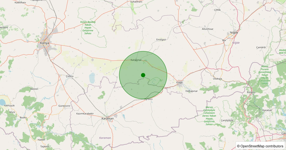Son 7 gün içinde Karapınar - Zafer noktasından 100 km yarıçap içerisinde meydana gelen diğer depremler: