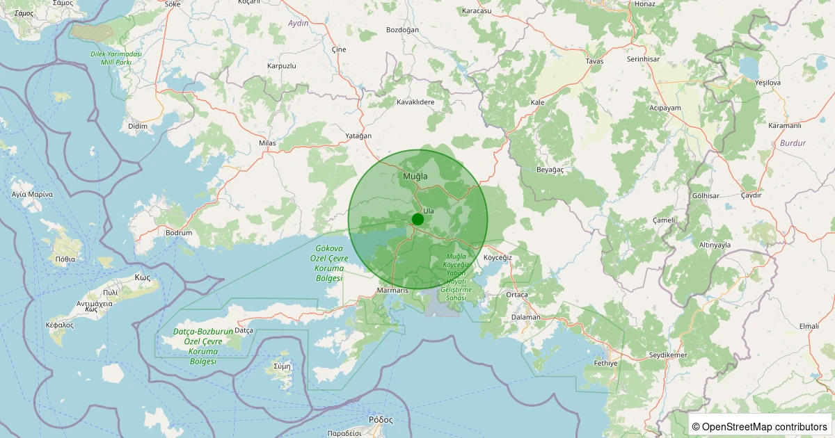Son 7 gün içinde Ula - Kızılağaç noktasından 100 km yarıçap içerisinde meydana gelen diğer depremler: