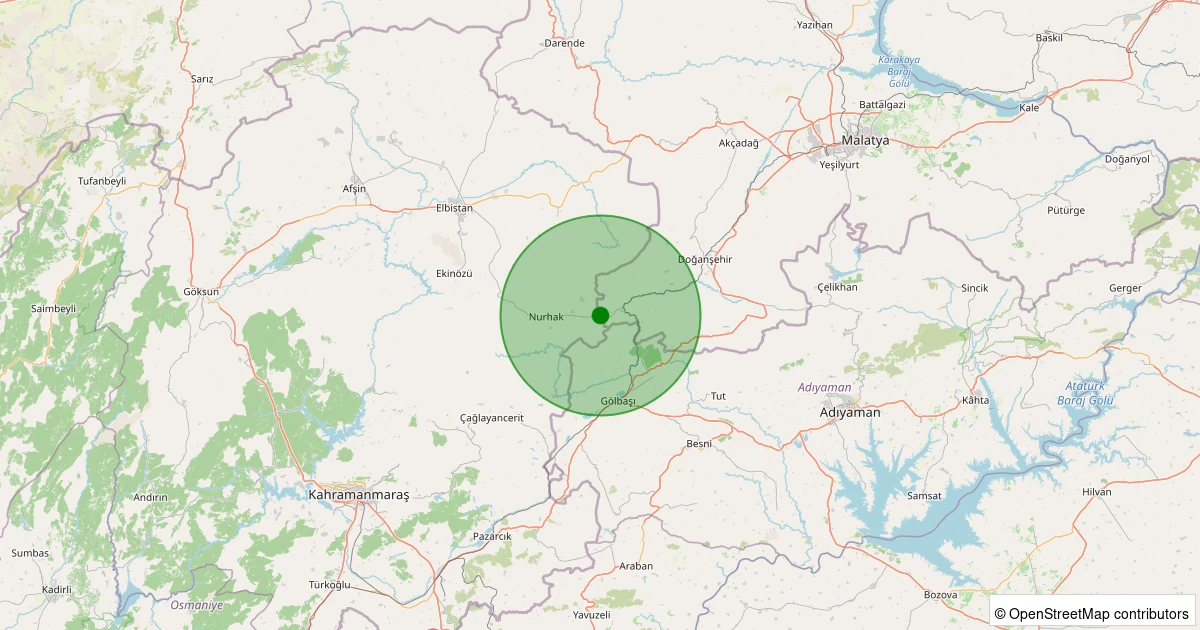 Son 7 gün içinde Nurhak - Yeni noktasından 100 km yarıçap içerisinde meydana gelen diğer depremler: