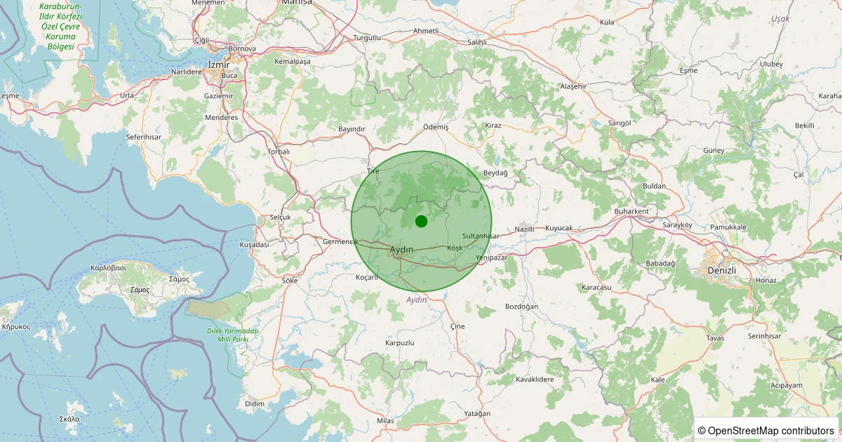 Son 7 gün içinde Efeler - Yukarıkayacık noktasından 100 km yarıçap içerisinde meydana gelen diğer depremler: