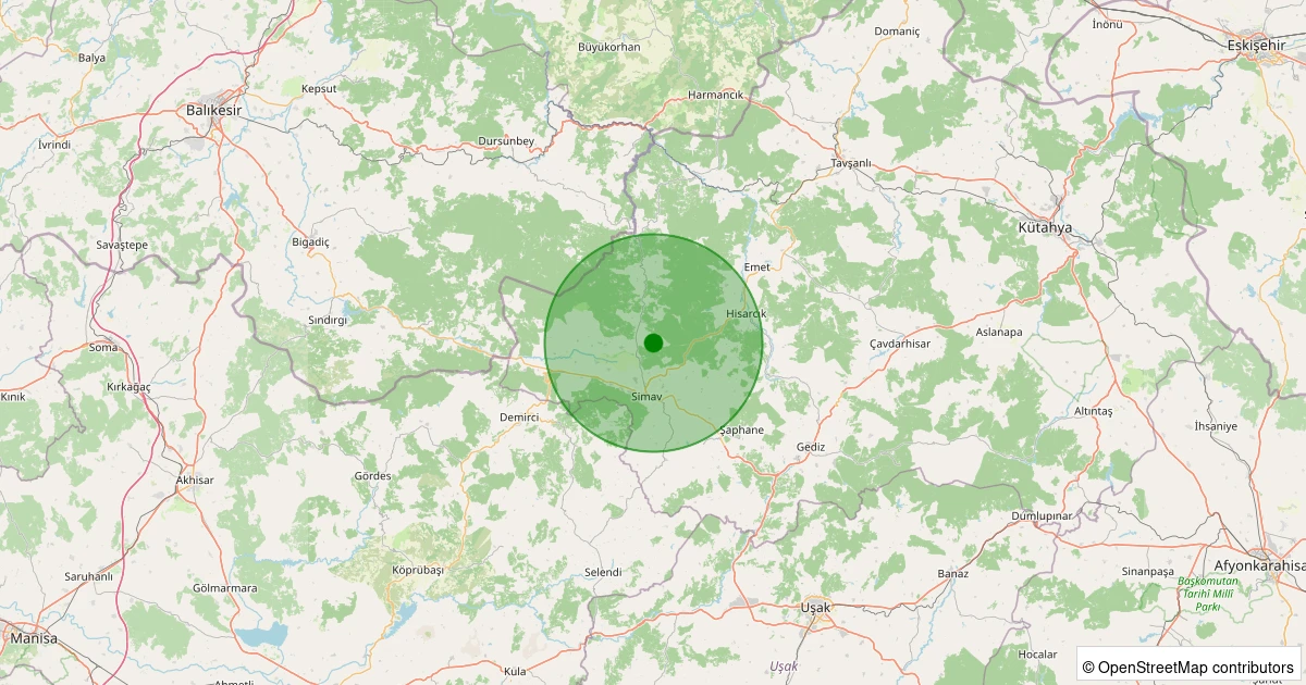 Son 7 gün içinde Simav - Eğirler Köyü noktasından 100 km yarıçap içerisinde meydana gelen diğer depremler: