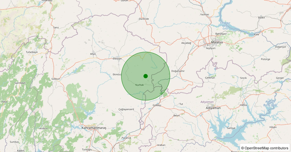 Son 7 gün içinde Elbistan - Karahasanuşağı Köyü noktasından 100 km yarıçap içerisinde meydana gelen diğer depremler:
