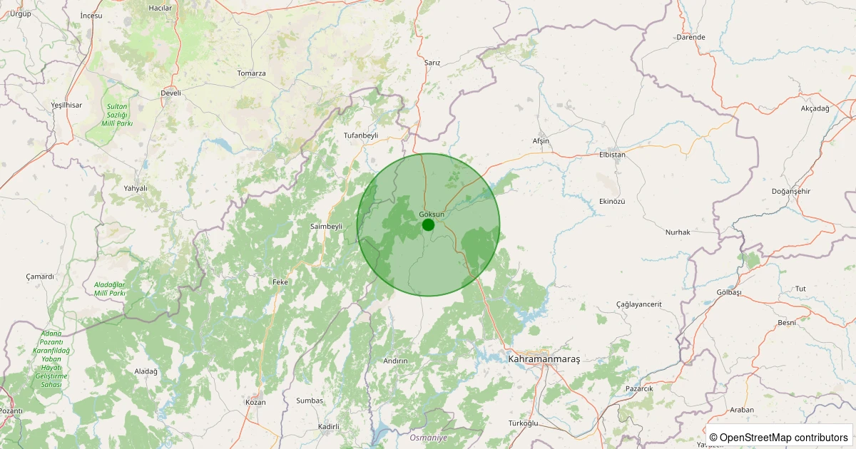 Son 7 gün içinde Göksun - Taşoluk/Mevlana noktasından 100 km yarıçap içerisinde meydana gelen diğer depremler: