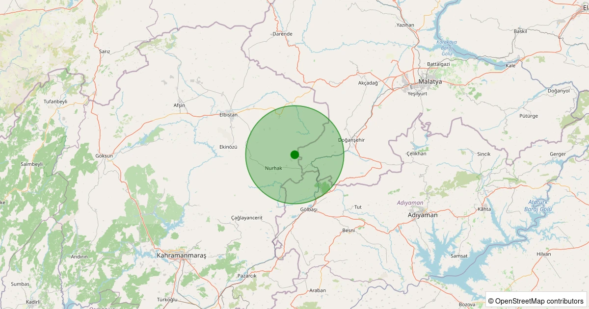 Son 7 gün içinde Nurhak - K.Tatlar Pınarbaşı noktasından 100 km yarıçap içerisinde meydana gelen diğer depremler:
