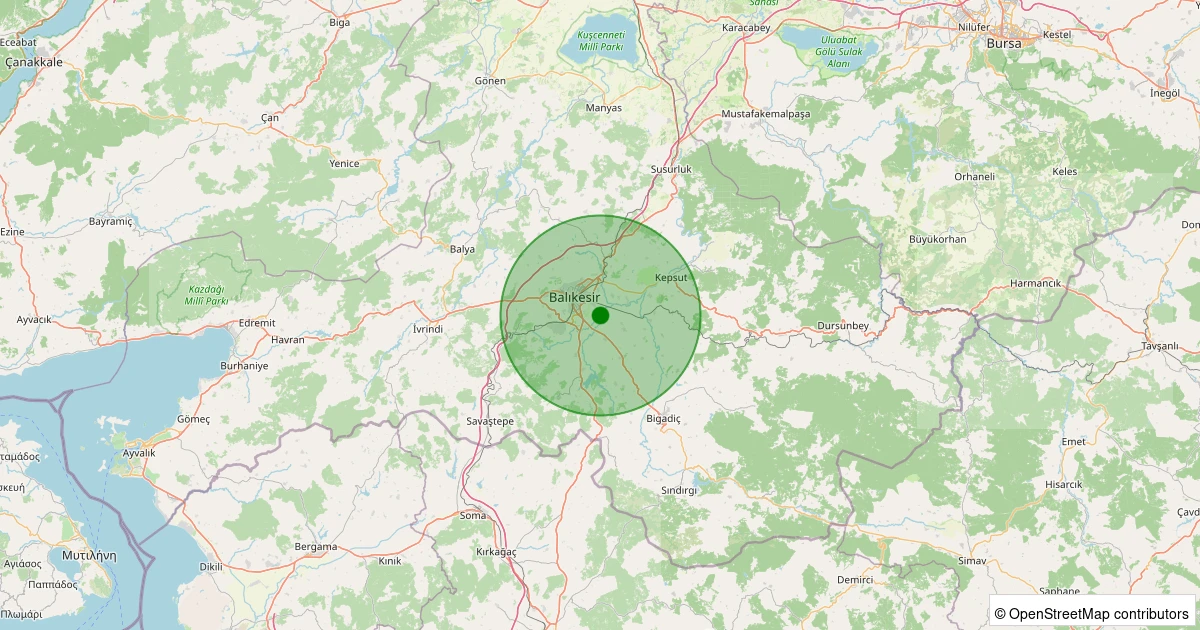 Son 7 gün içinde Altıeylül - Ovaköy noktasından 100 km yarıçap içerisinde meydana gelen diğer depremler: