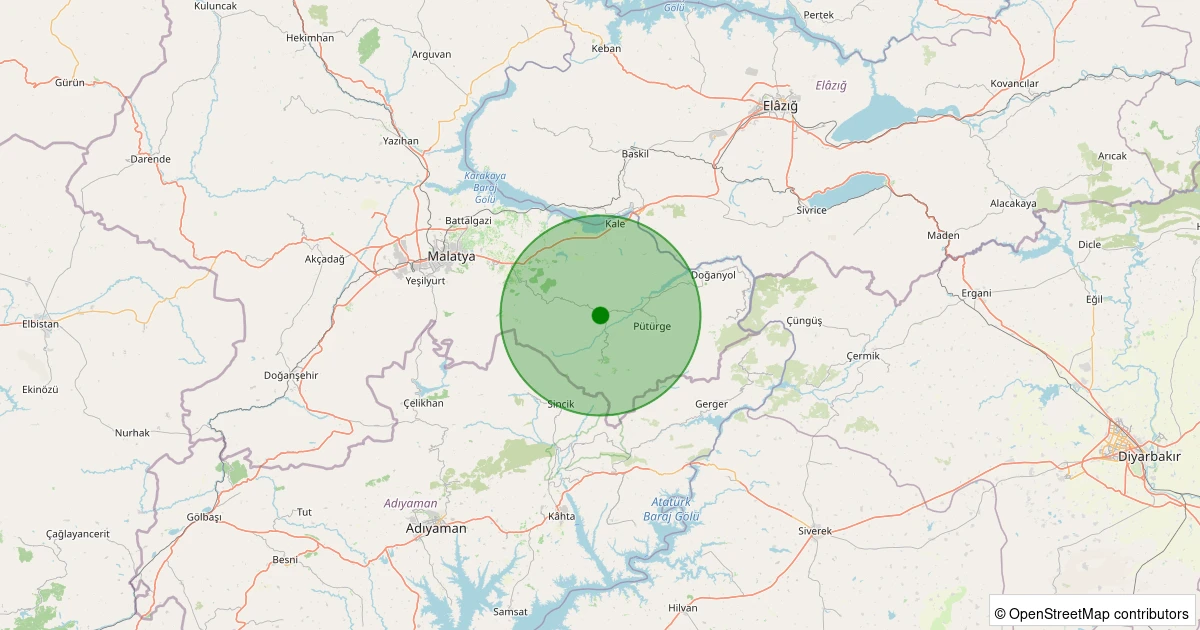 Son 7 gün içinde Pütürge - Pazarcık Köyü noktasından 100 km yarıçap içerisinde meydana gelen diğer depremler: