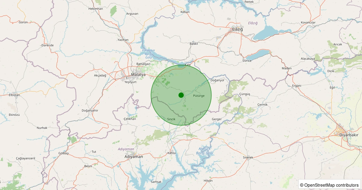 Son 7 gün içinde Pütürge - Alihan Köyü noktasından 100 km yarıçap içerisinde meydana gelen diğer depremler: