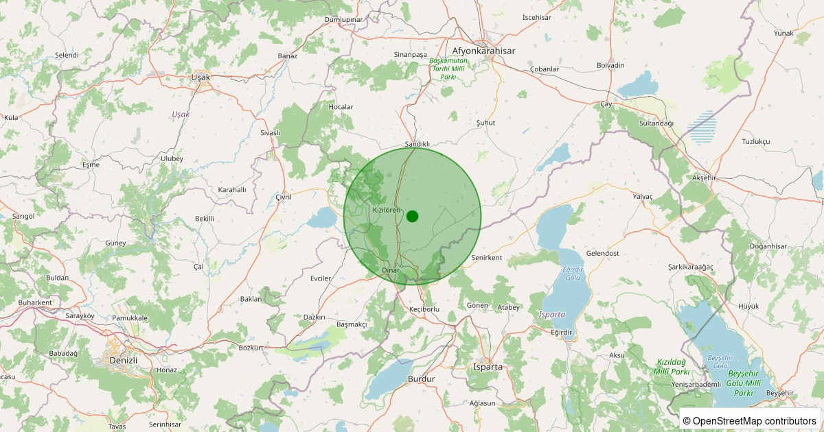 Son 7 gün içinde Dinar - Çayüstü Köyü noktasından 100 km yarıçap içerisinde meydana gelen diğer depremler: