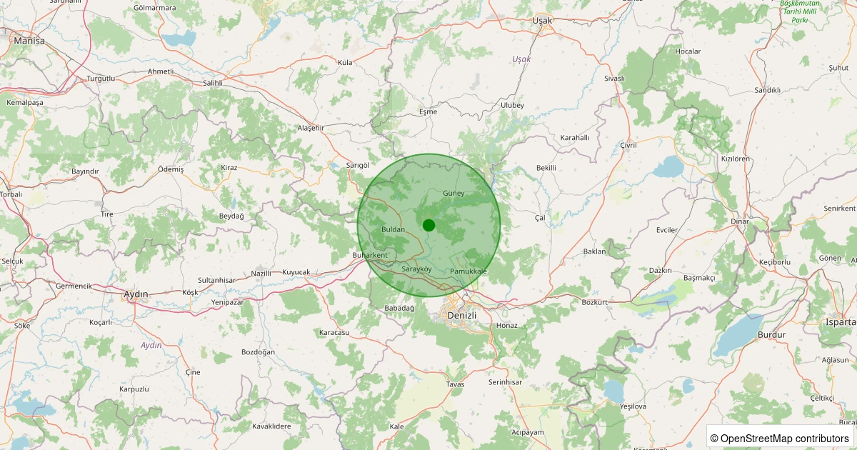 Son 7 gün içinde Buldan - Yenicekent noktasından 100 km yarıçap içerisinde meydana gelen diğer depremler: