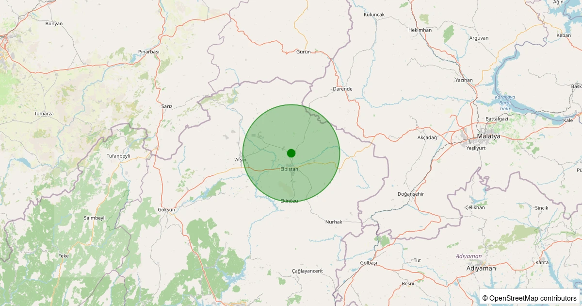 Son 7 gün içinde Elbistan - Maraba Köyü noktasından 100 km yarıçap içerisinde meydana gelen diğer depremler: