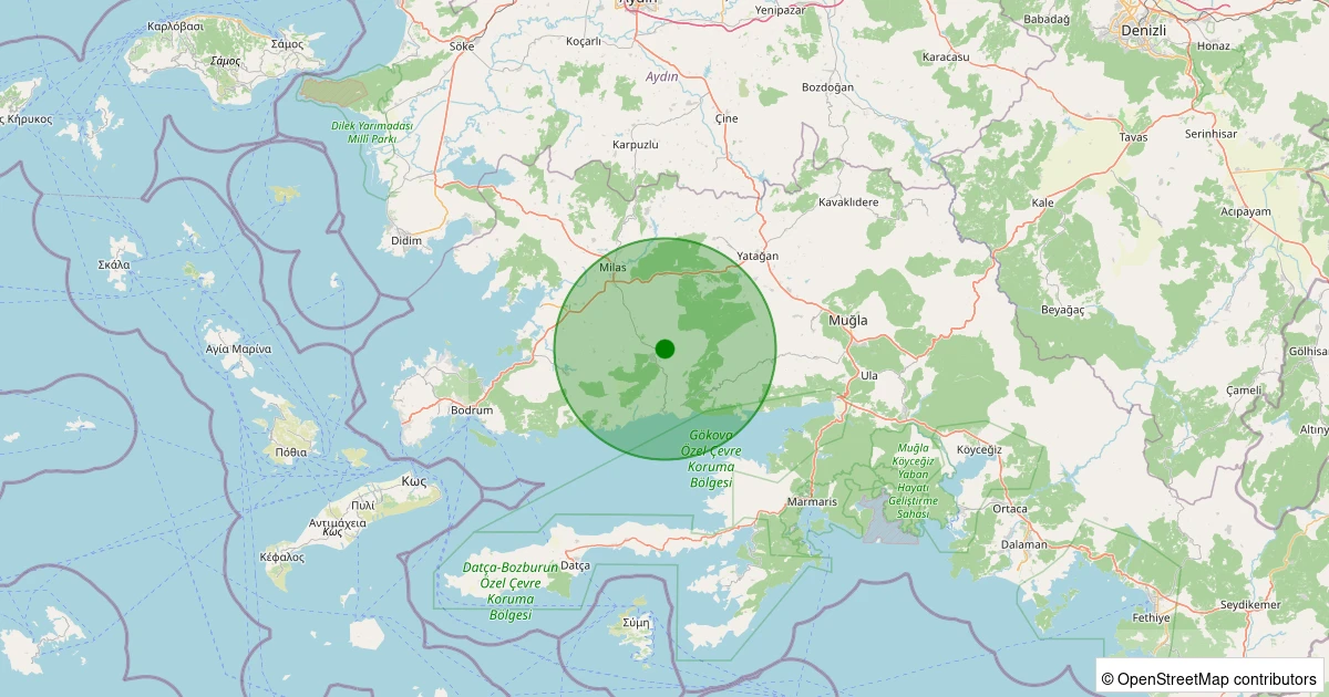 Son 7 gün içinde Milas - Karacaağaç noktasından 100 km yarıçap içerisinde meydana gelen diğer depremler: