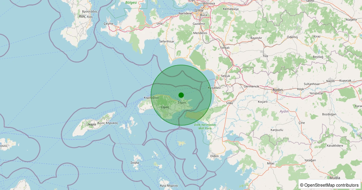 Son 7 gün içinde Ege Denizi - Kuşadası Körfezi - [24.92 km] Kuşadası (Aydın) noktasından 100 km yarıçap içerisinde meydana gelen diğer depremler: