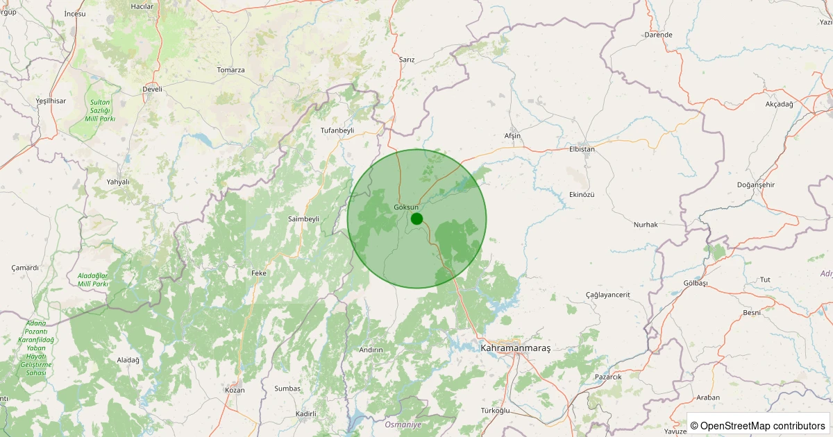 Son 7 gün içinde Göksun noktasından 100 km yarıçap içerisinde meydana gelen diğer depremler: