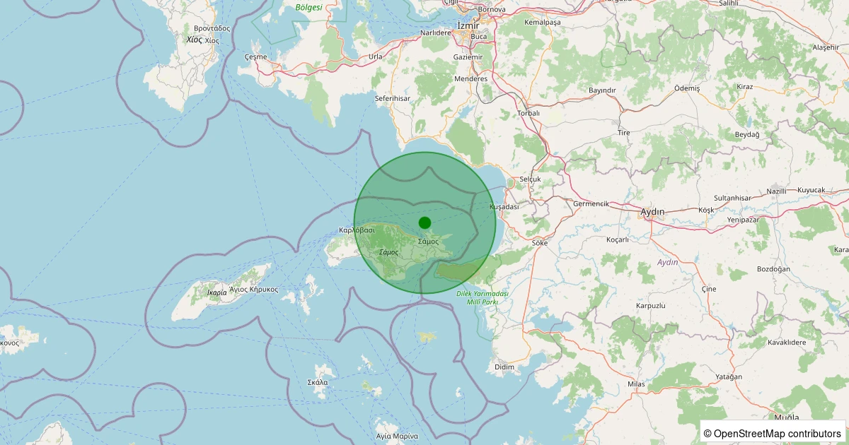 Son 7 gün içinde KUSADASI noktasından 100 km yarıçap içerisinde meydana gelen diğer depremler: