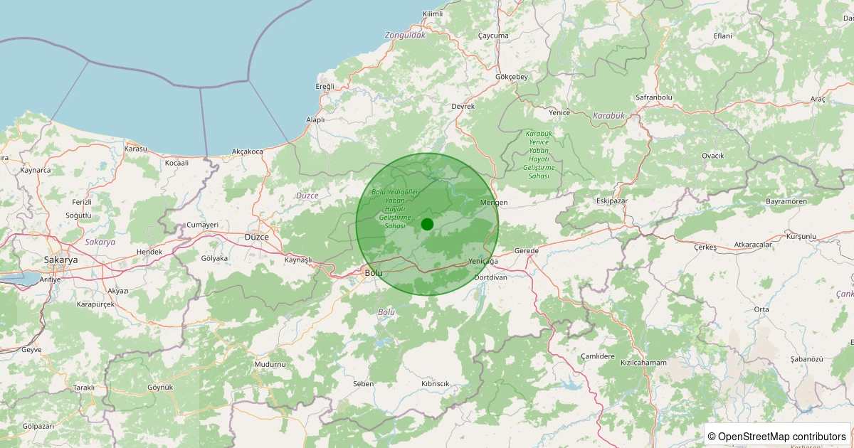 Son bir hafta içerisinde Bolu şehri Merkez noktasından 100 km yarıçap içerisinde toplamda 56 deprem kaydedilmiştir. Bu depremlerden en büyüğü 2.7 büyüklüğünde ve en sığ odaklısı 1.00 kilometre derinlikte gerçekleşmiştir.