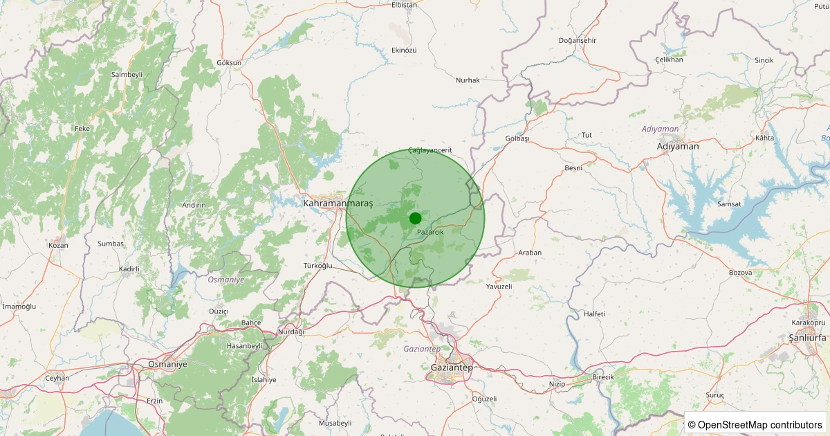 Son 7 gün içinde Pazarcık - Çiçekalanı noktasından 100 km yarıçap içerisinde meydana gelen diğer depremler:
