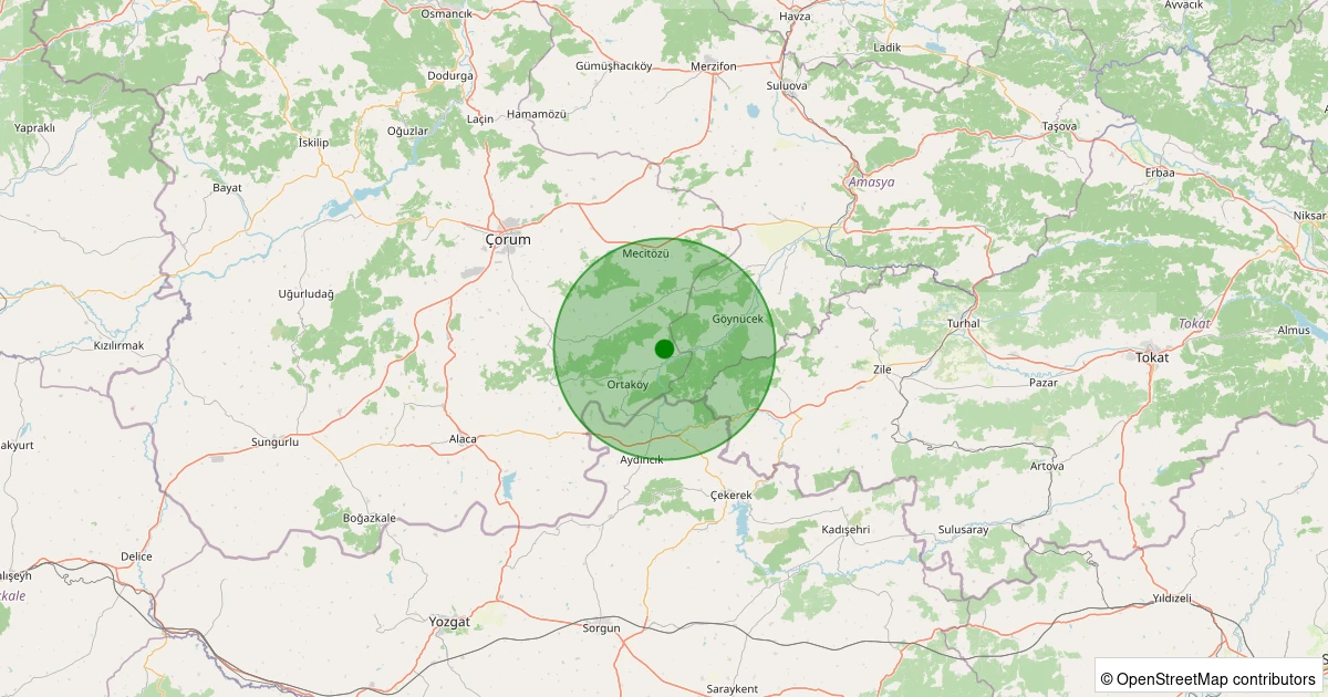 Son bir hafta içerisinde Çorum şehri Ortaköy - Büyükkışla Köyü noktasından 100 km yarıçap içerisinde toplamda 16 deprem kaydedilmiştir. Bu depremlerden en büyüğü 2.2 büyüklüğünde ve en sığ odaklısı 2.90 kilometre derinlikte gerçekleşmiştir.