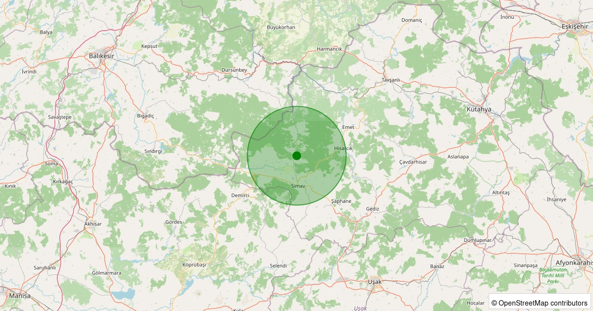 Son 7 gün içinde Simav - Yemişli Köyü noktasından 100 km yarıçap içerisinde meydana gelen diğer depremler: