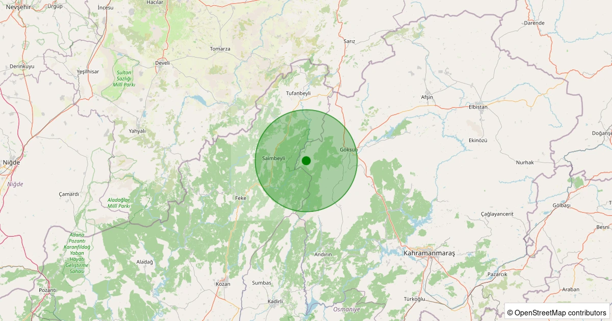 Son 7 gün içinde Göksun - Kaleboynu noktasından 100 km yarıçap içerisinde meydana gelen diğer depremler: