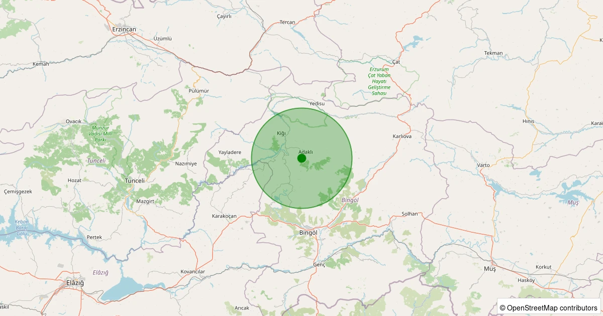 Son 7 gün içinde Adaklı - Karaçubuk Köyü noktasından 100 km yarıçap içerisinde meydana gelen diğer depremler: