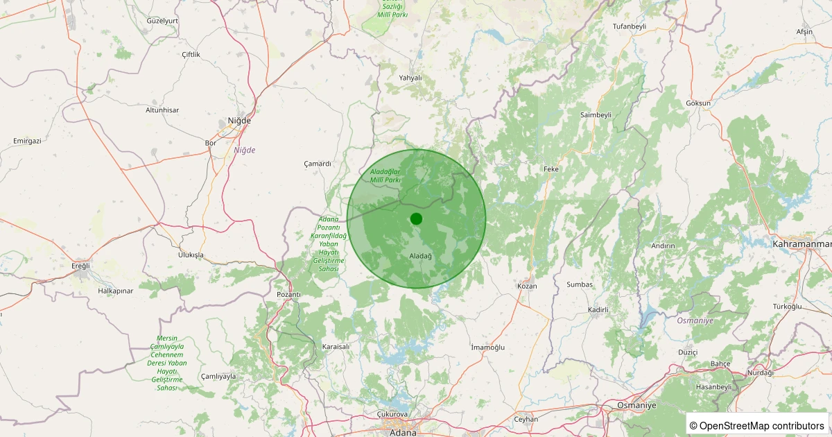 EMSC üzerinden alınan ölçümlere göre Aladağ bölgesinde 31.03.2026 04:41 tarihinde gece saatlerinde 1.0 büyüklüğünde bir deprem meydana geldi.