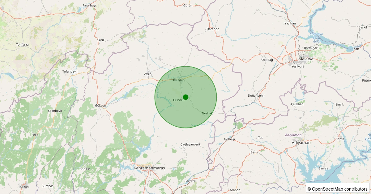 Son 7 gün içinde Elbistan - Gümüşdöven Köyü noktasından 100 km yarıçap içerisinde meydana gelen diğer depremler: