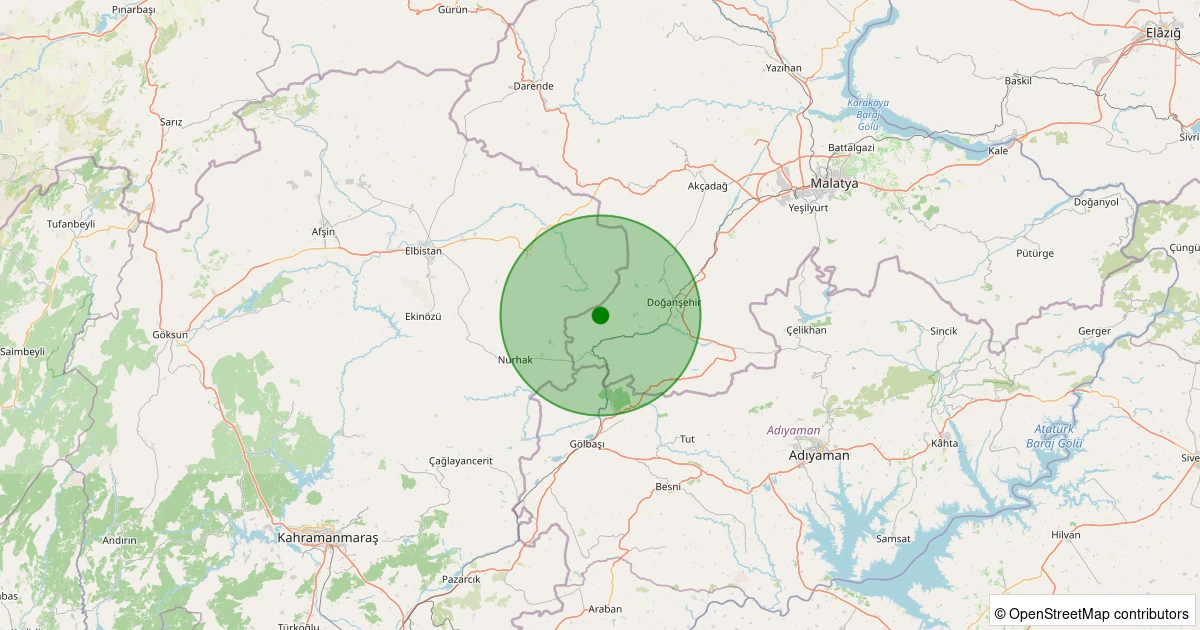 Son 7 gün içinde Doğanşehir - Beğre noktasından 100 km yarıçap içerisinde meydana gelen diğer depremler: